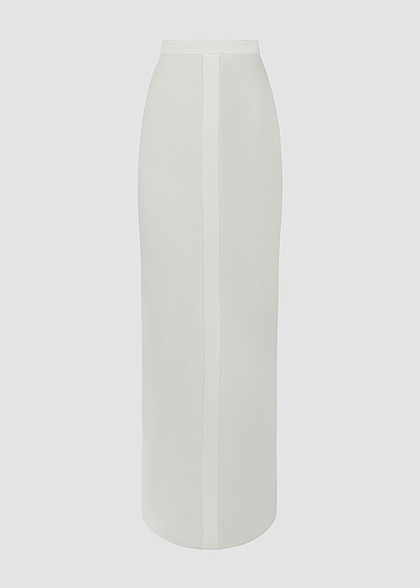 The New Tux Skirt is synonymous with elegance and sophistication. With an elongated silhouette that enhances posture and creates elegant lines, it guarantees an impeccable fit for any occasion. The vertical stripe with shine, inspired by the classic tuxedo style, adds a touch of modernity and refinement to the piece.