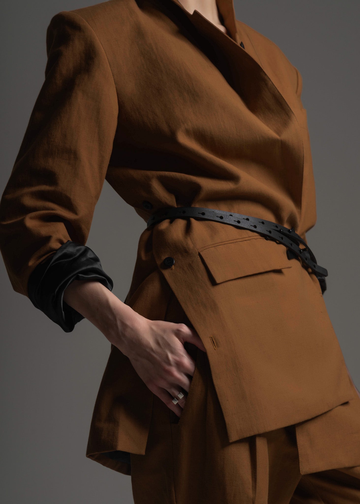 Idealizado para uma mulher moderna, cool e que aprecia o estilo gentlewoman, o Blazer Adam é a desconstrução de um clássico e o resultado de uma simbiose entre o masculino e o feminino. Seu design combina as linhas retas da alfaiataria masculina, marcada por ombros fortes, com a fluidez e movimento proporcionados pelas aberturas laterais e fechamentos alternativos. O tecido luxuoso, com um leve brilho natural do linho, transmite sofisticação e casualidade para um visual moderno e versátil que pode facilmente ser utilizado em ocasiões formais ou casuais, de dia ou à noite. Para um conjunto de terno, una-o à Calça Adam e experimente cintura-lo com nosso cinto Serpent ou Double para uma silhueta mais marcada.