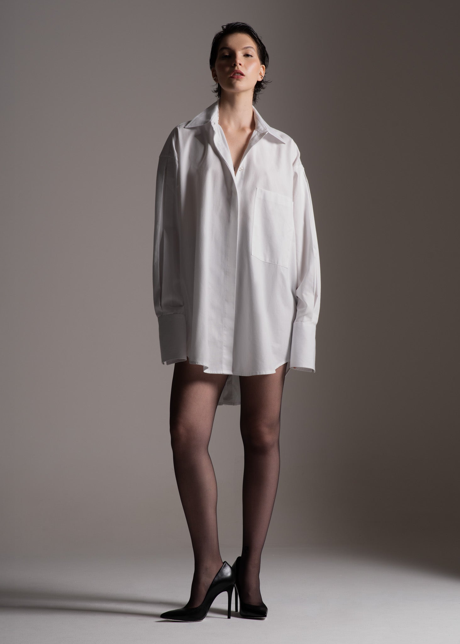 A chemise oversized Arum em Oxford é uma charmosa desconstrução de um clássico, idealizada para ser uma peça elegante, moderna e versátil. Seu comprimento assimétrico, mangas volumosas, punhos estruturados e imponentes, juntamente com as aberturas laterais e nas costas, são elementos de design que permitem que ela seja estilizada de diversas formas, tornando-a uma peça-chave no seu guarda-roupa. O tecido oxford de algodão é macio, respirável e levemente estruturado. Use-a como vestido ou combine com shorts, saias e calças, explorando as aberturas laterais e traseira, e brincando com as mangas estruturadas. Experimente com tênis ou salto para criar inúmeras silhuetas para diferentes ocasiões, sempre mantendo uma estética contemporânea e minimalista.