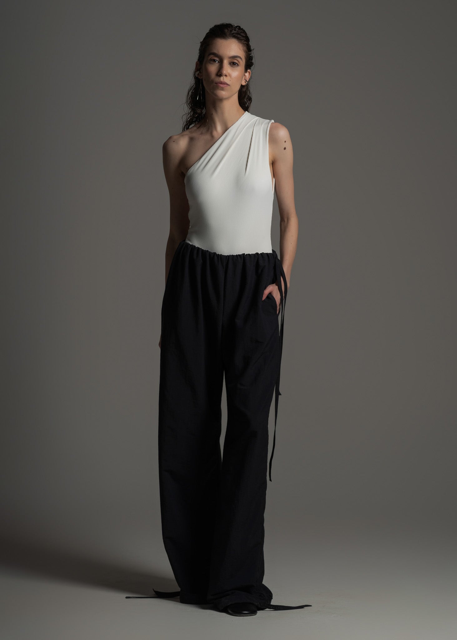 O Body Maiô Seiva de um ombro só possibilita a criação de looks para o dia, noite e até para a praia. A dupla camada de malha canelada supermacia proporciona conforto e sofisticação a uma silhueta elegante e atraente. Combine-o com calças ou shorts de alfaiataria para looks modernos, tanto diurnos quanto noturnos, ou simplesmente use-o para um encontro com o mar.