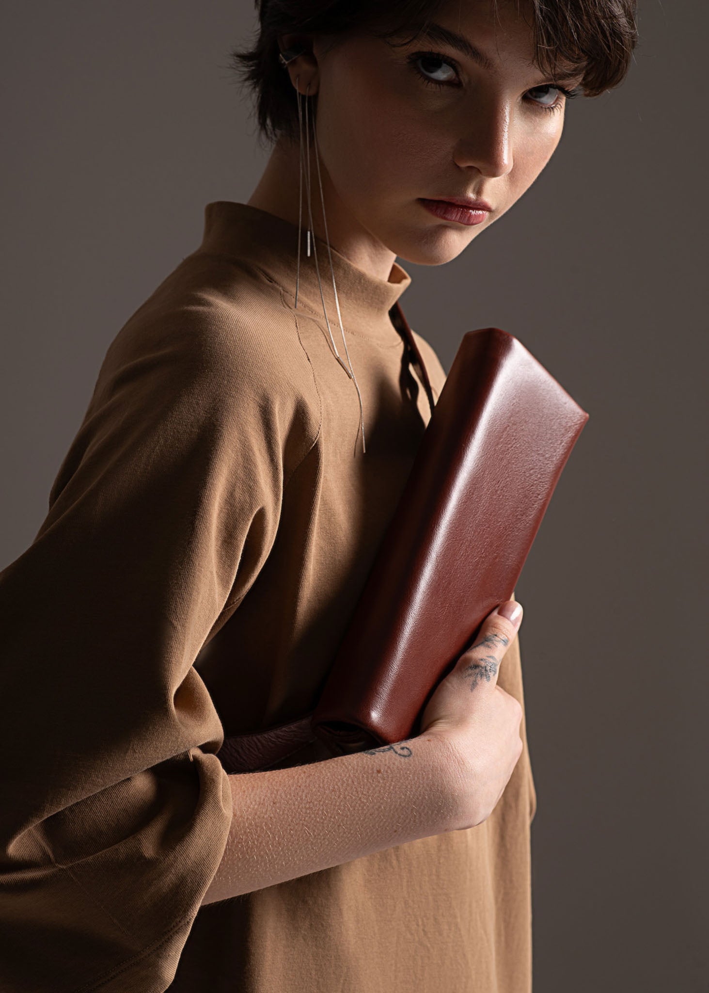 - Clutch de couro de estrutura macia