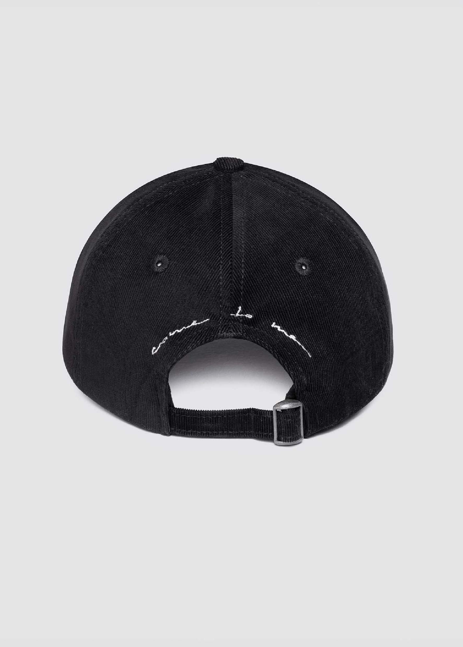Boné de veludo com modelagem de dad hat e fivela para ajuste em metal envelhecido nas costas. Apresenta a logo da marca bordada na parte frontal e a frase “come to me” bordada na parte traseira.
