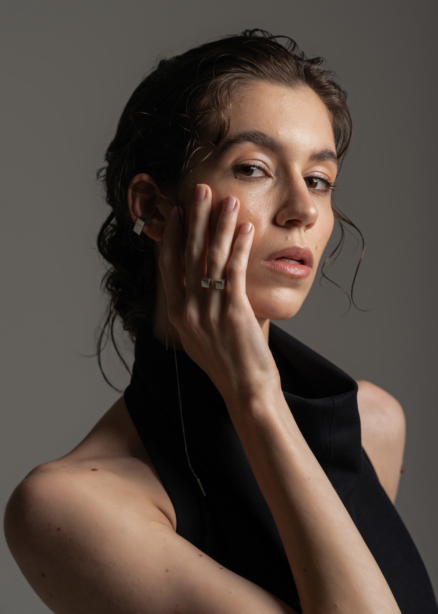 O Anel Creation é a assinatura do universo Muese. Seu design robusto e aberto na parte superior foi idealizado para transmitir força e leveza ao mesmo tempo. Trabalhado à mão, um por um, em nosso metal favorito, a prata, destaca-se pela modernidade de suas superfícies planas e arestas marcadas. Devido à atemporalidade, qualidade e modernidade desta peça, ela se torna um acessório versátil que se encaixa perfeitamente em qualquer ocasião, se transformando em sua assinatura de estilo.