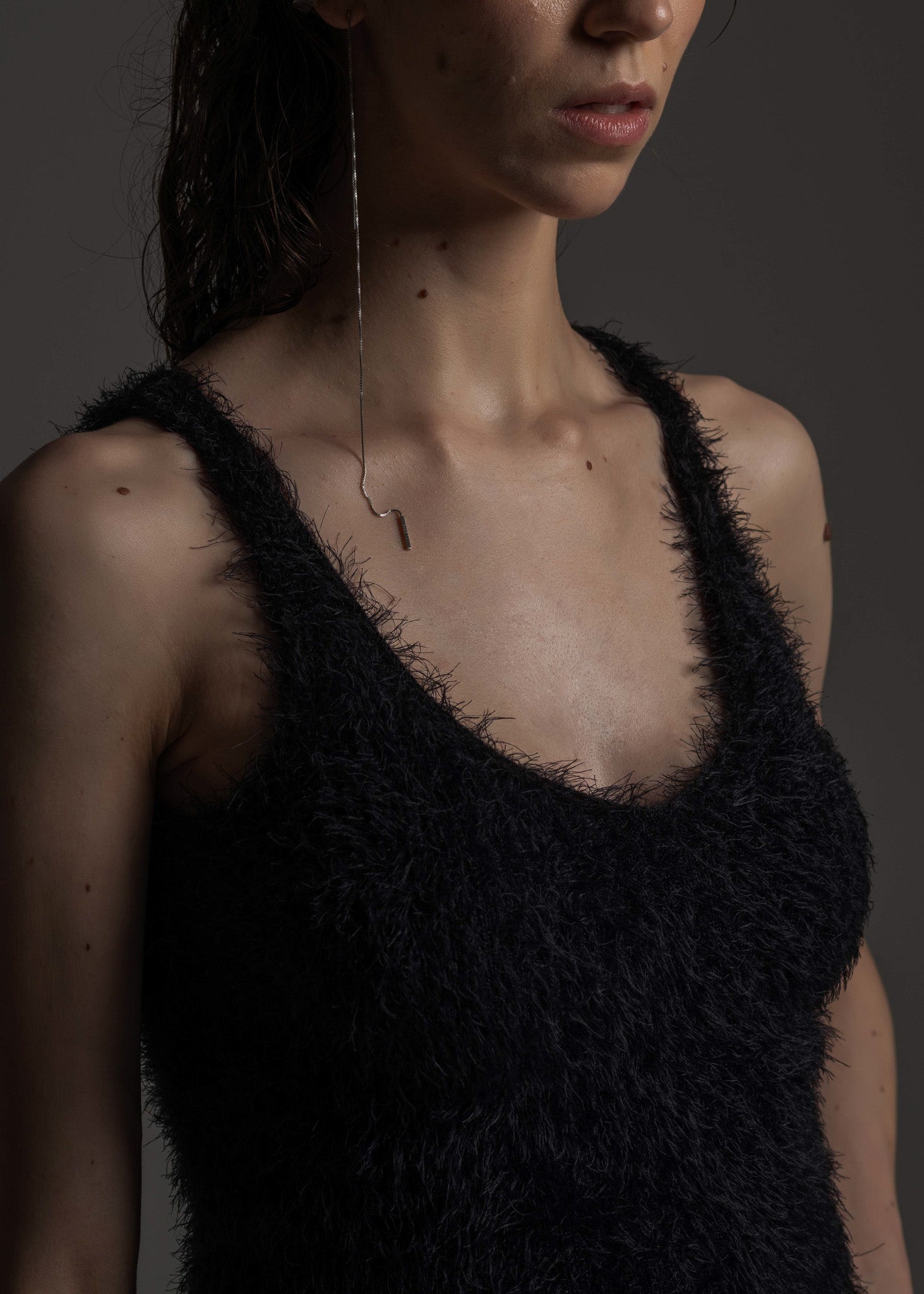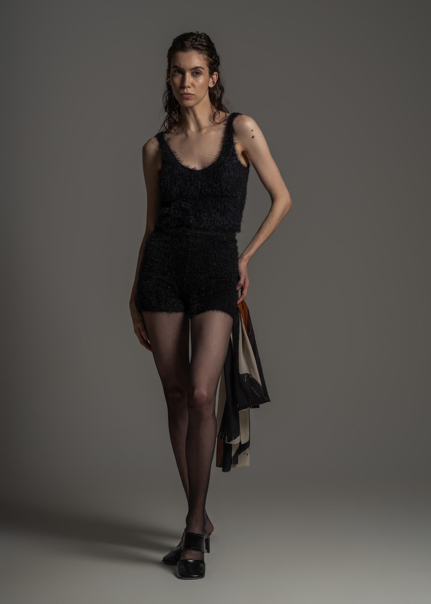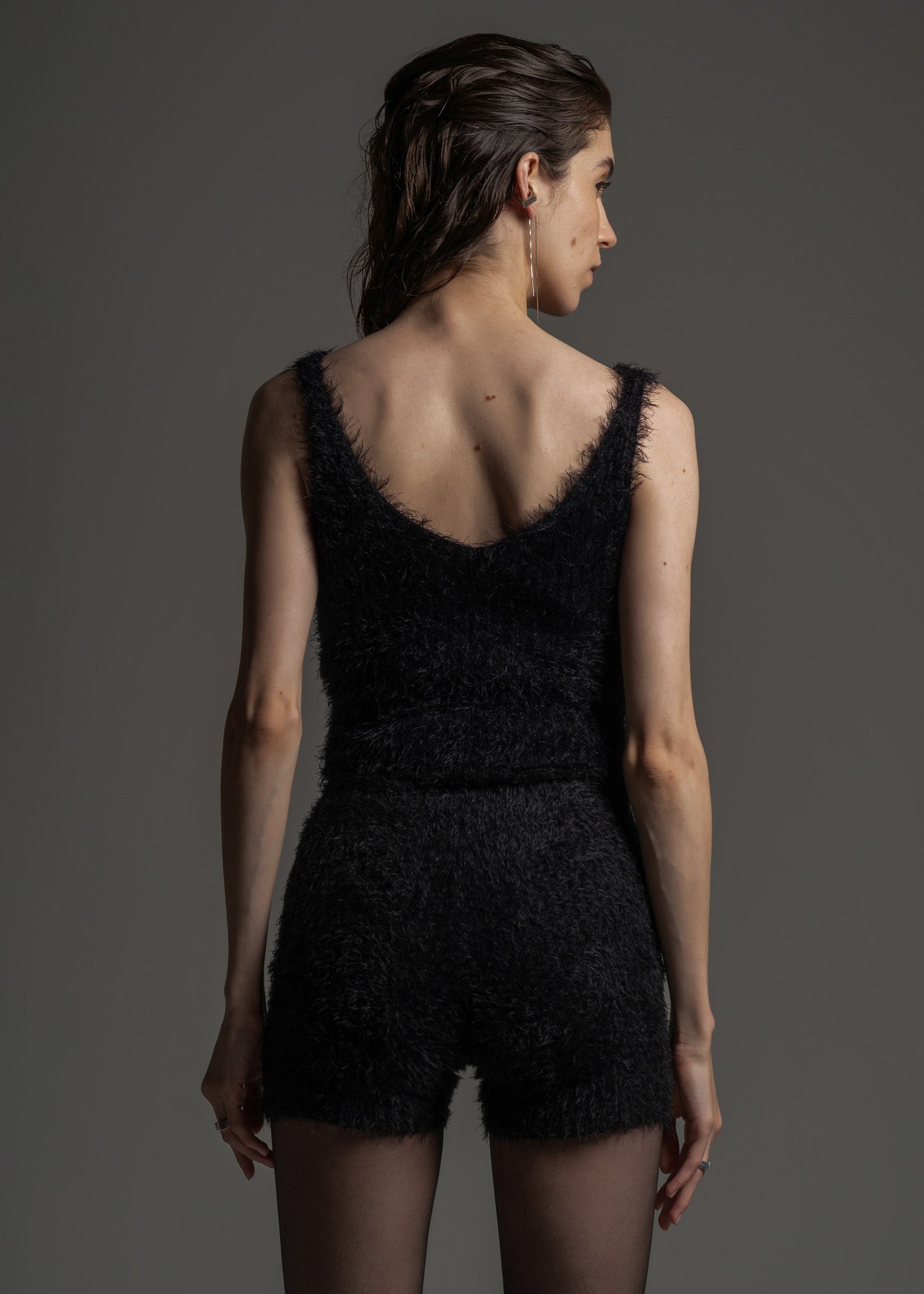 O toque macio e aconchegante do Top Fig enriquece sua silhueta clássica e incrivelmente versátil. Sua textura felpuda e o decote em V, tanto na frente quanto nas costas, adicionam personalidade e elegância a qualquer combinação. Para um visual minimalista e moderno, experimente combiná-lo com o Short Fig Muese.