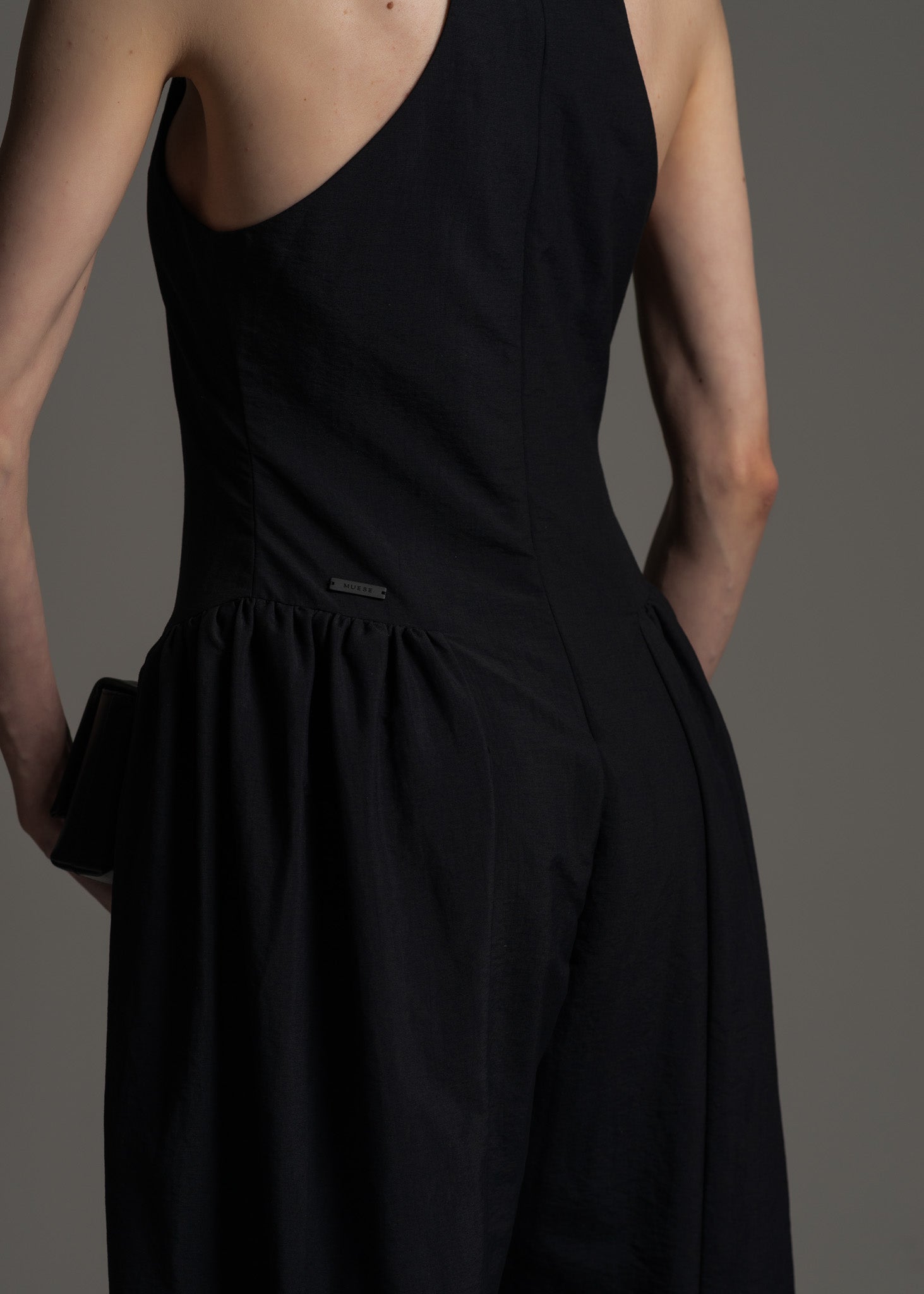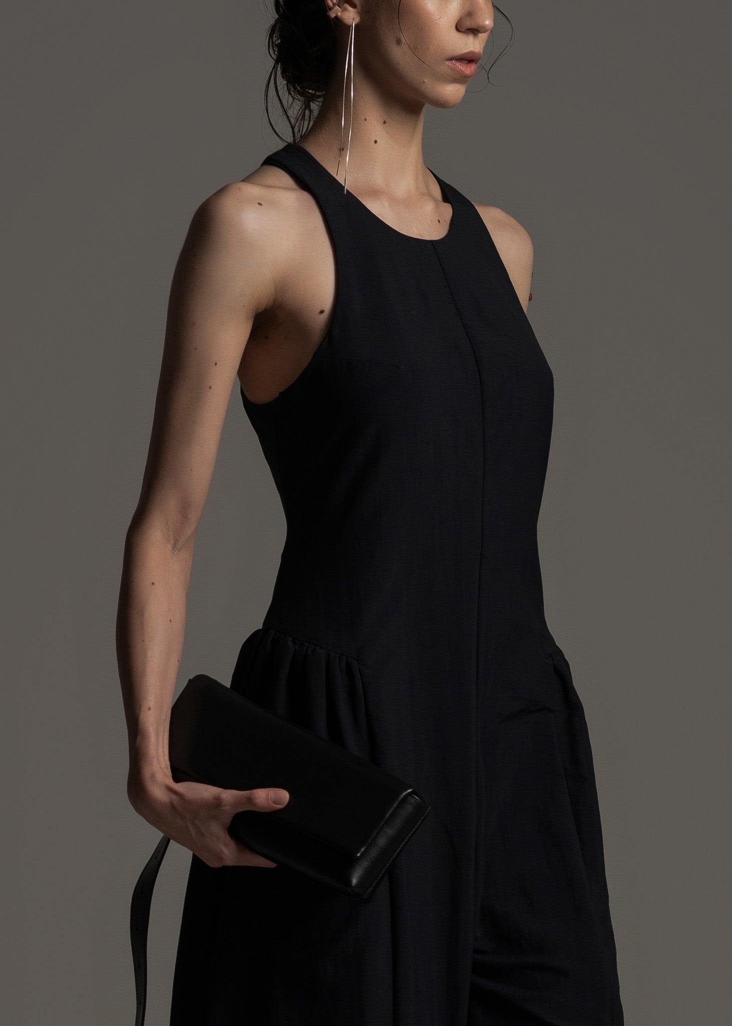 O Macacão BioD Roll une tecnologia e elementos esportivos em uma proposta moderna e elegante. Confeccionado em tecido tecnológico biodegradável, sua silhueta ampla e alongada nas pernas proporciona leveza e liberdade de movimento. Os detalhes pregueados nas laterais conferem um toque feminino e charmoso, enquanto o decote tipo nadador e o acabamento embutido, com zíper invisível nas costas, reforçam o visual clean e contemporâneo. Versátil, o macacão é perfeito tanto para ocasiões formais quanto casuais. Resistente a amassados, com toque macio e secagem rápida, é a peça ideal para complementar sua mala de viagem.
