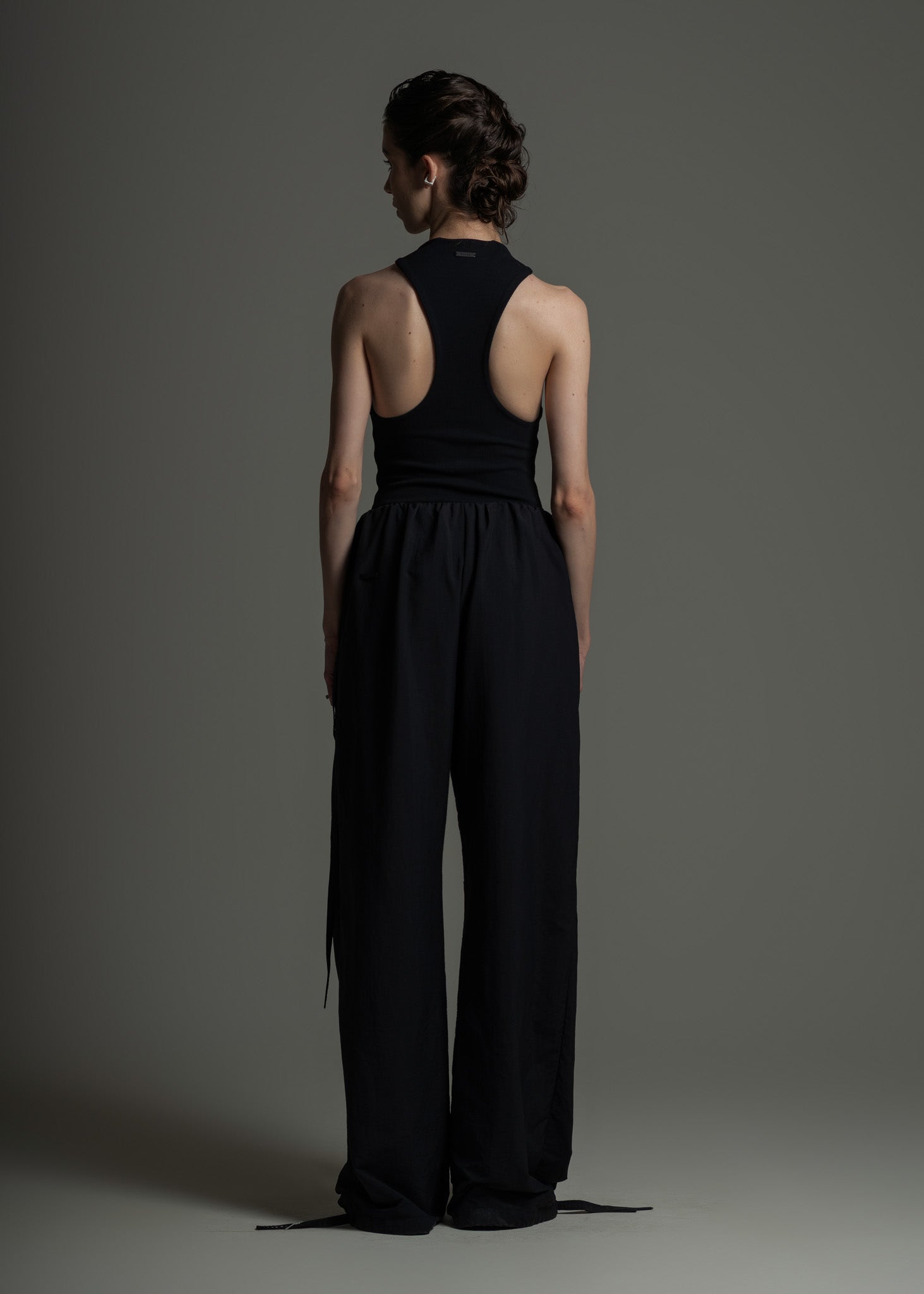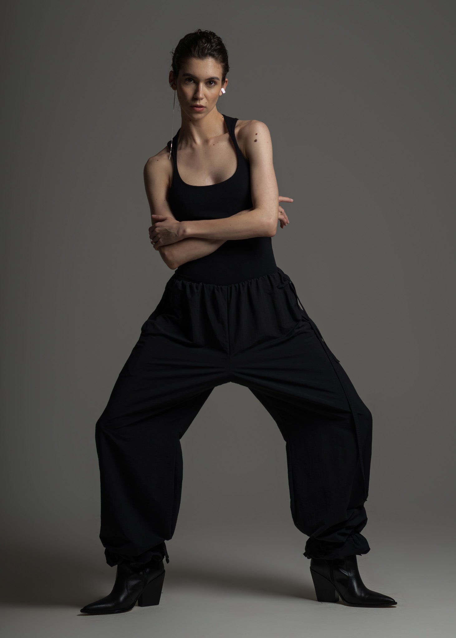 Um básico charmoso e nada convencional! Seu nome remete ao desenho afiado, não usual, das alças desta peça, que equilibra modernidade e sensualidade. Luxuosa, ela é confeccionada em dupla camada de malha crepe canelada, o que oferece firmeza e cobertura no uso. O decote cavado tipo nadador nas costas e ligeiramente quadrado na frente possuem acabamento embutido, reforçando uma estética limpa e minimalista. Com caimento justo ao corpo, é a base perfeita para equilibrar composições com peças amplas, estruturadas ou em alfaiataria.